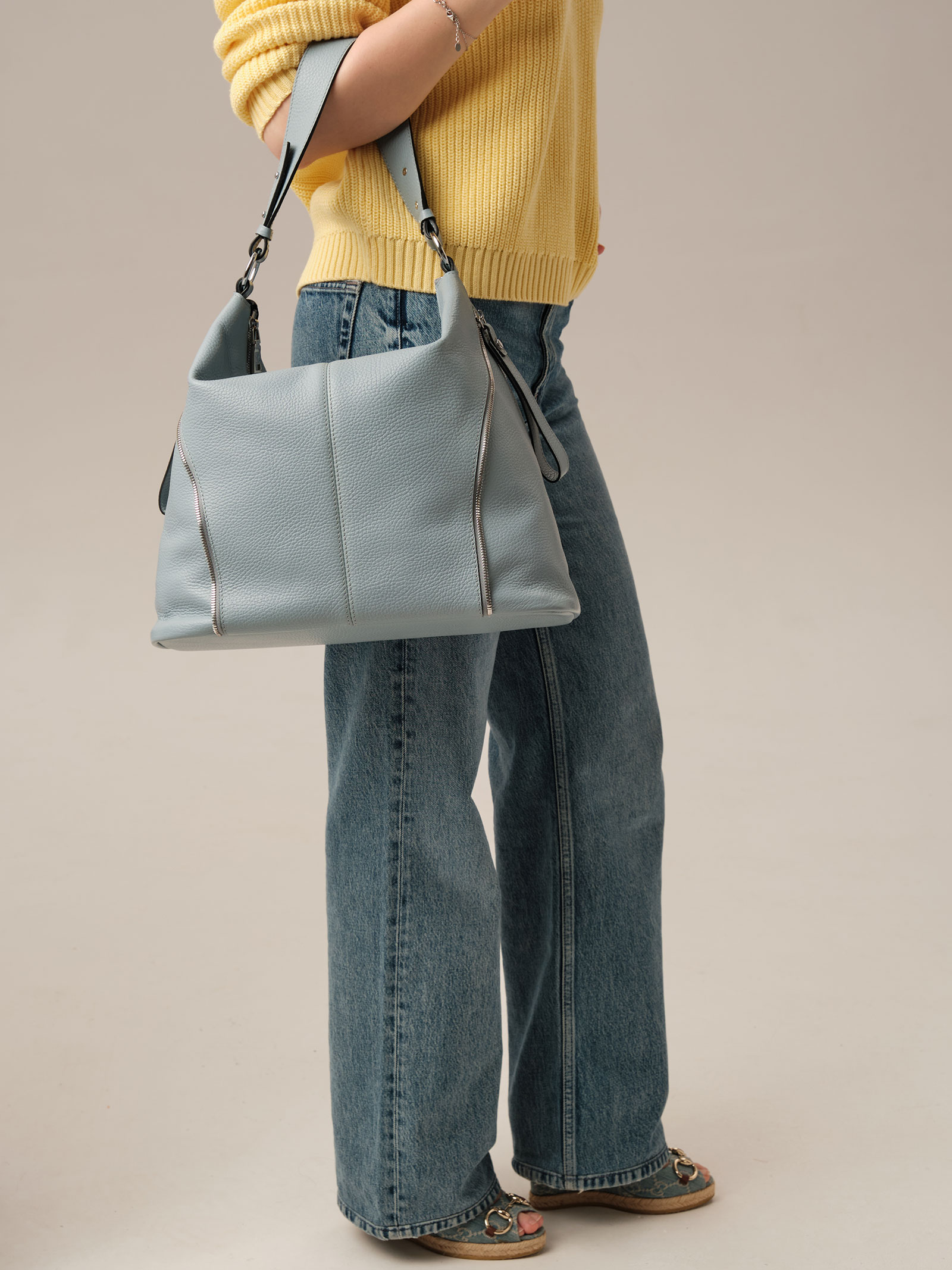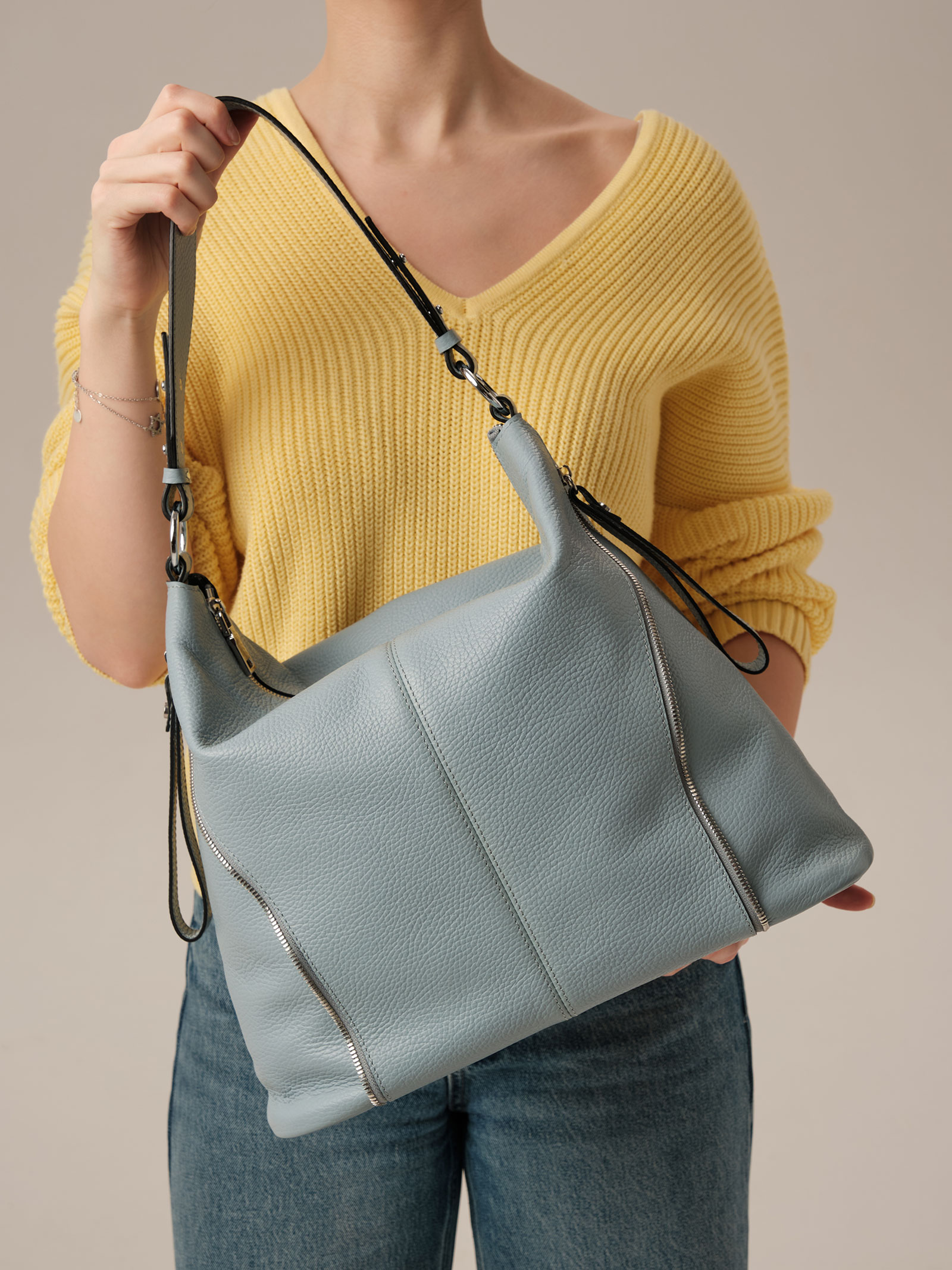 Женская кожаная сумка Deboro 3917 серое небо из натуральной кожи.