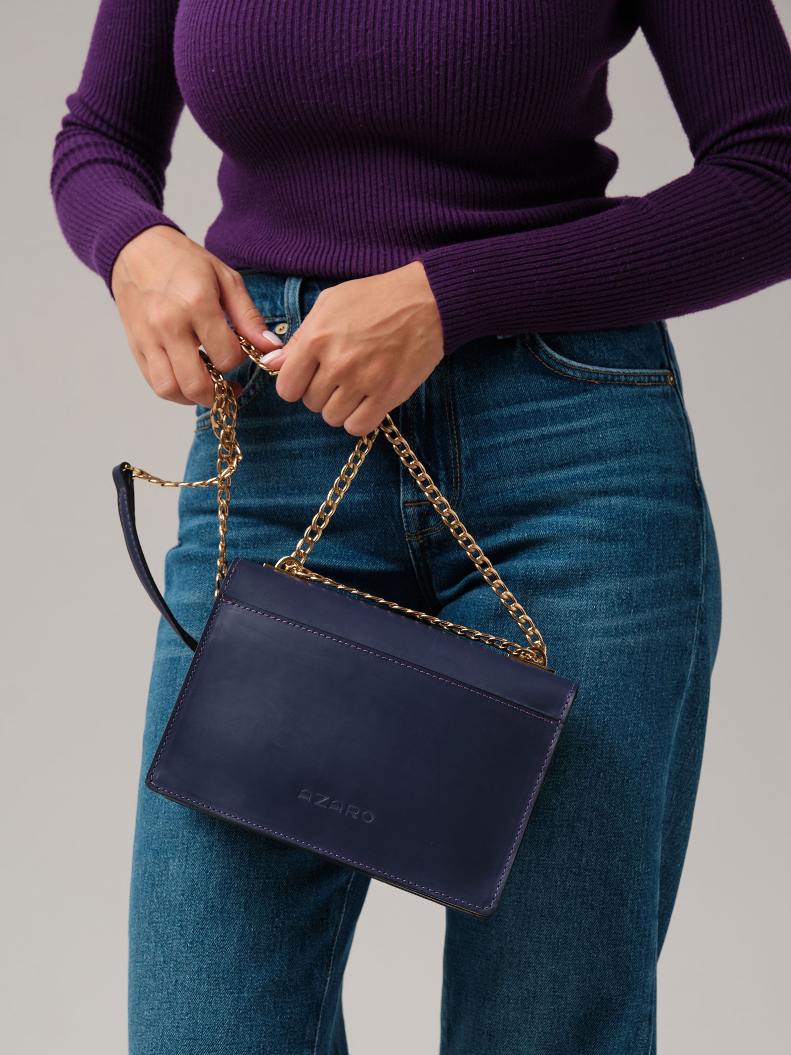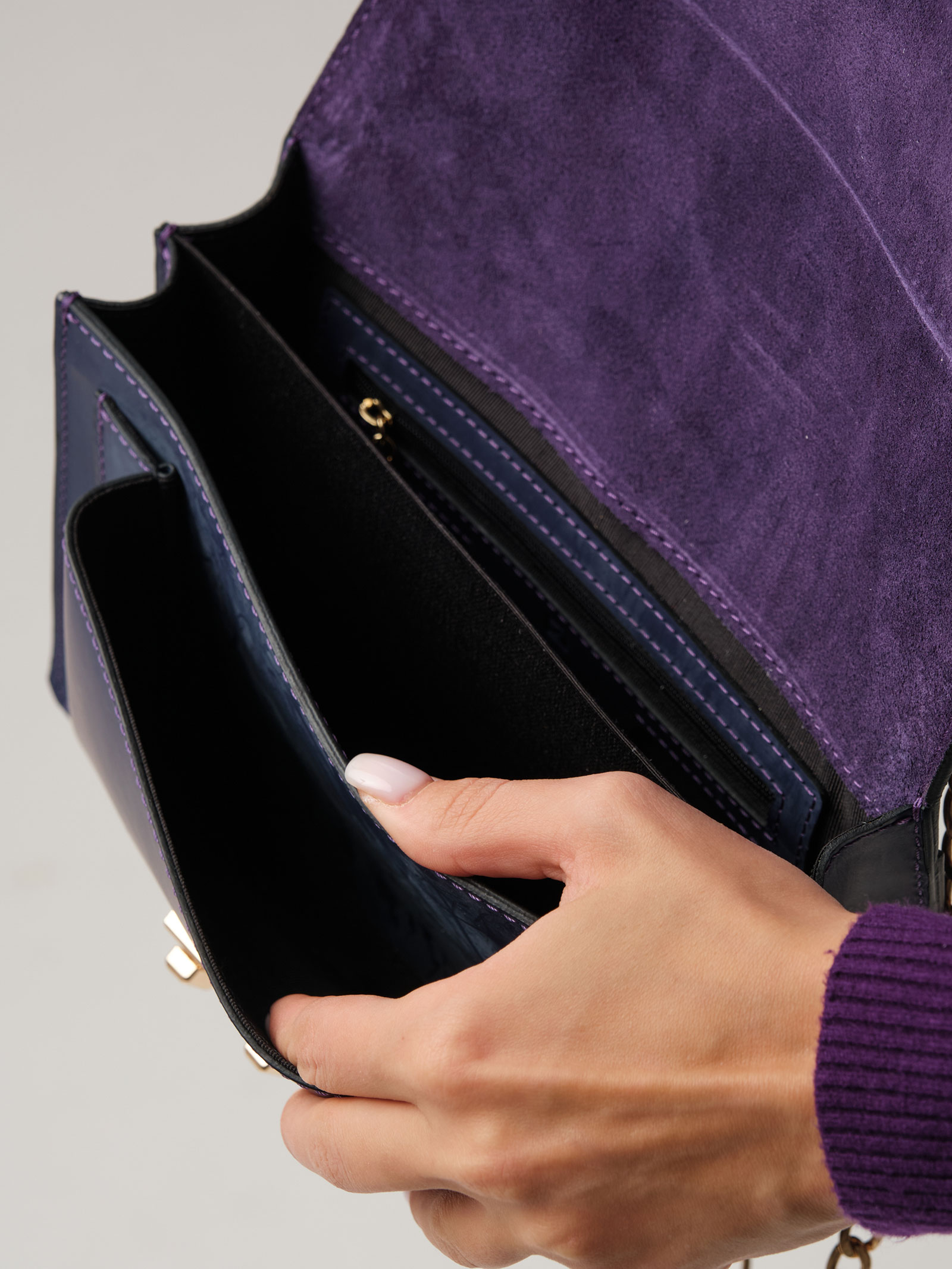 Кожаная женская сумка кросс-боди Azaro 90495 фиолетовый цветок с ремнем-цепочкой.