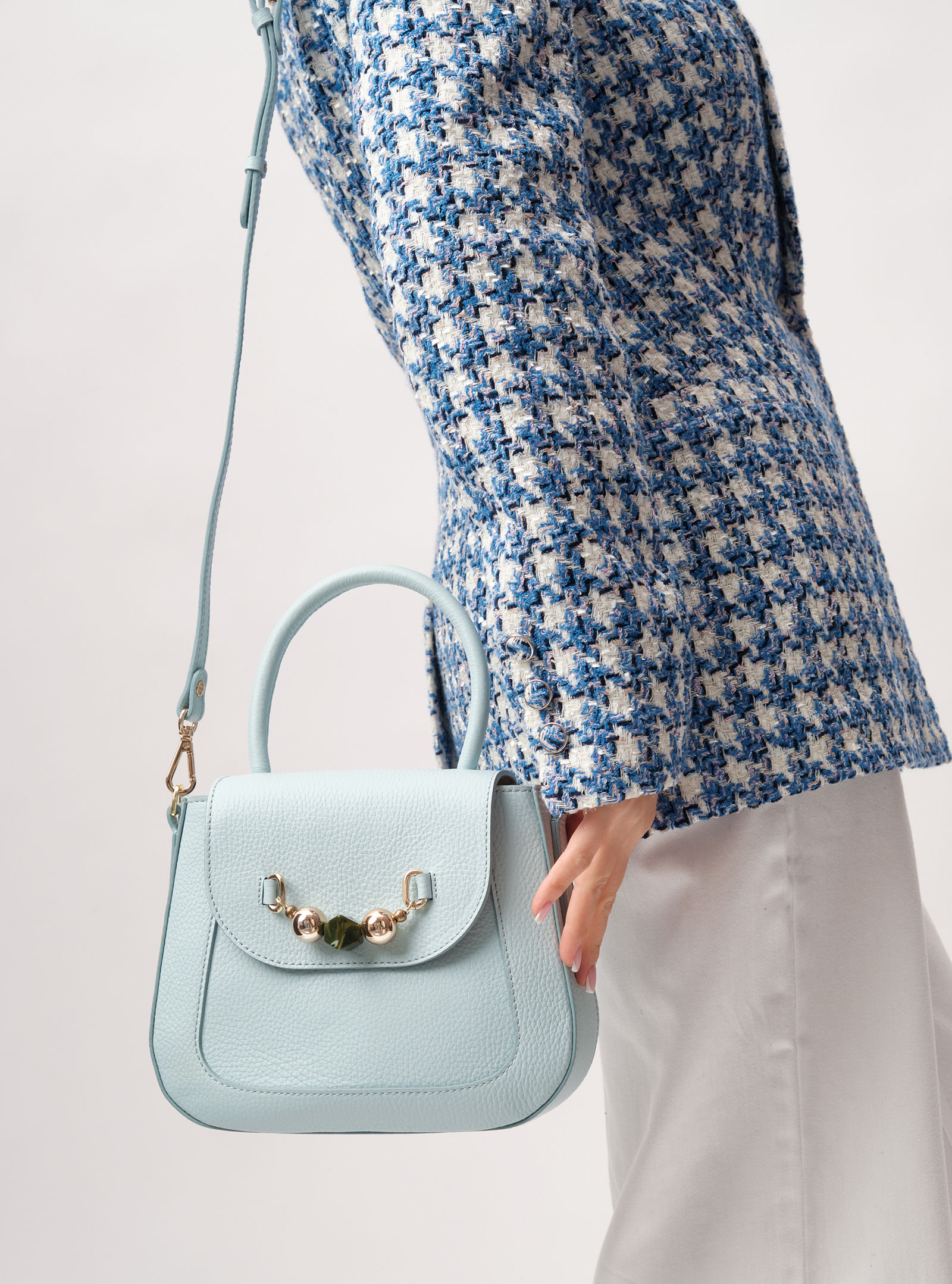 Женская кожаная сумка Deboro 30739 голубой айсберг из натуральной кожи и замши.