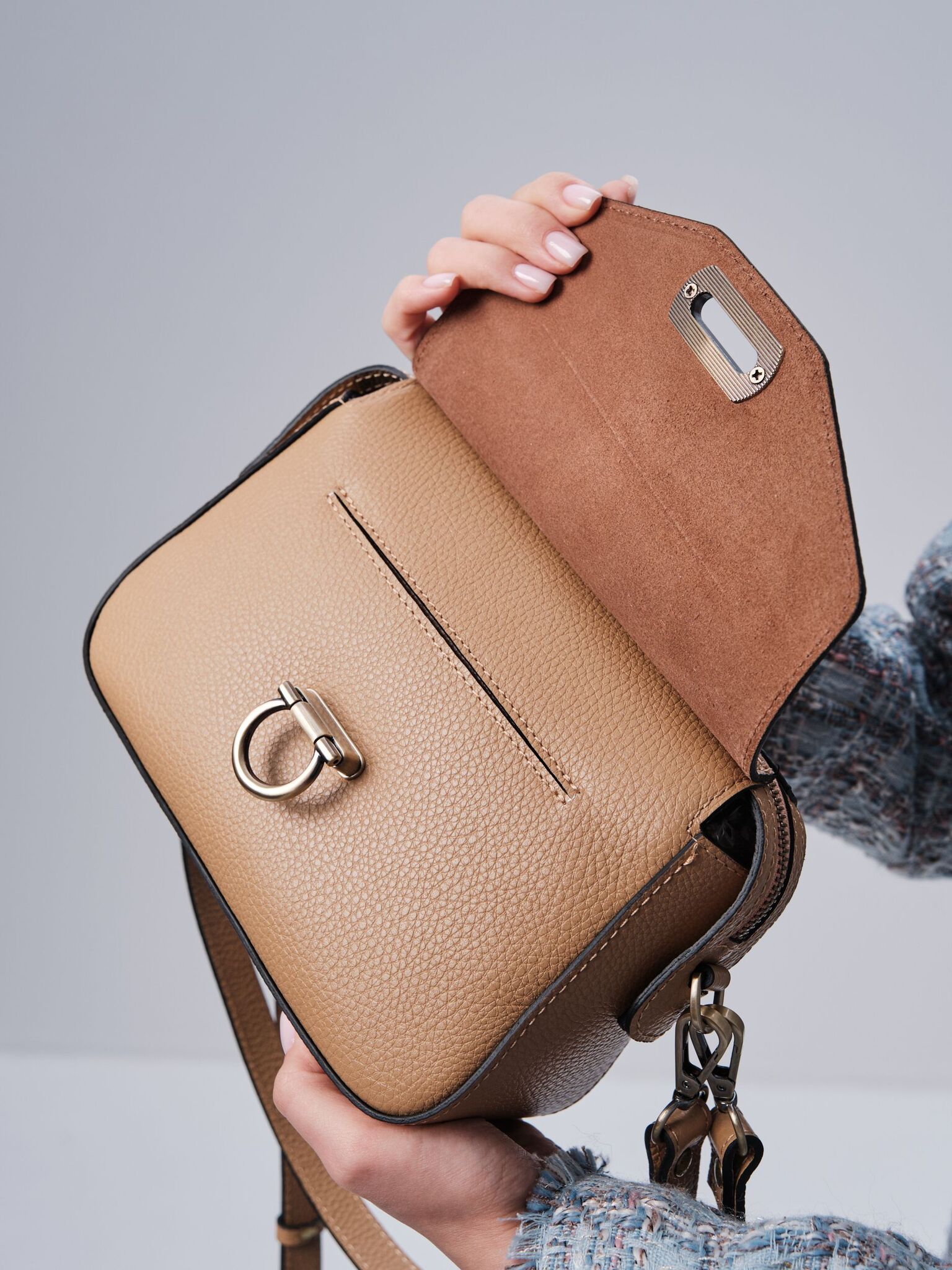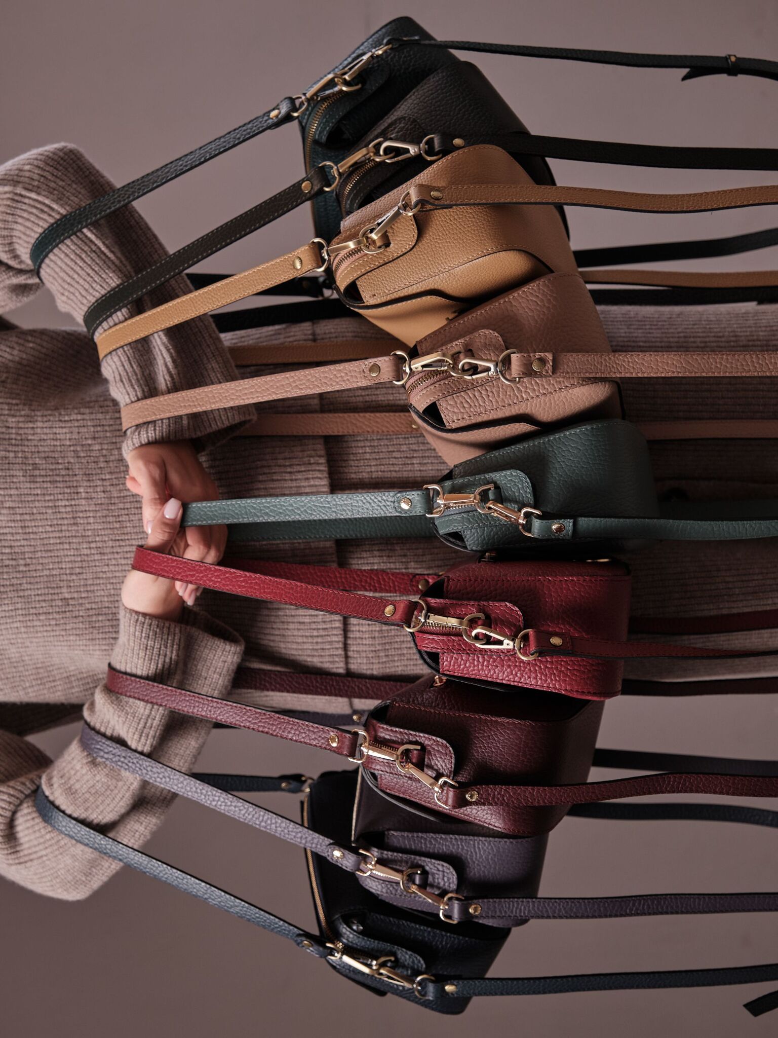 Сумка женская через плечо натуральная кожа выполнена из мягкой кожи, что обеспечивает приятные тактильные ощущения и долговечность. Средний размер сумки позволяет легко разместить все необходимые вещи: от кошелька и телефона до косметички и ключей. Сумка кросс-боди легко носится через плечо, что обеспечивает комфорт во время ношения. Наличие регулируемого ремня добавляет удобства, позволяя вам подстроить его под свои предпочтения.