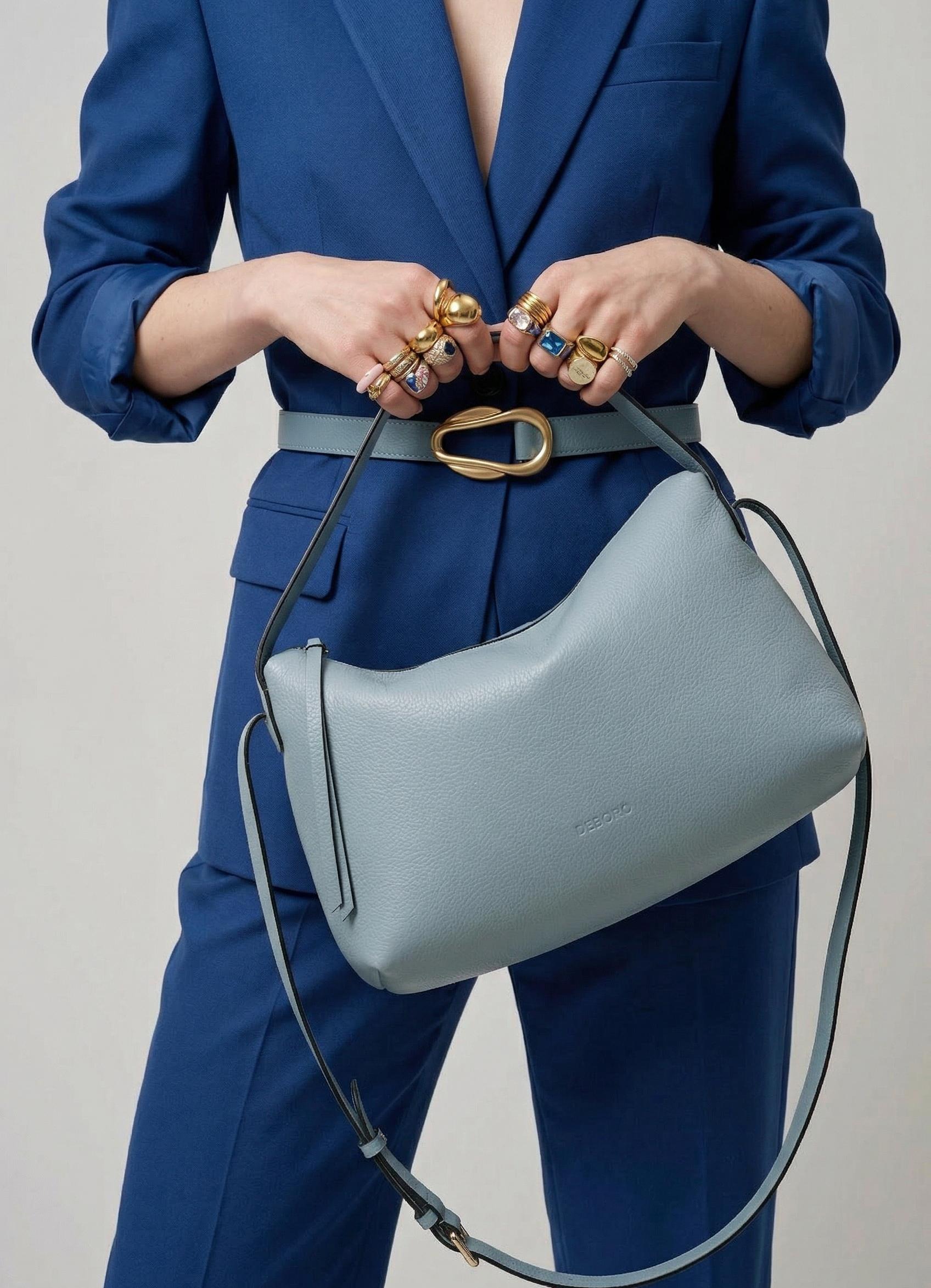 Кожаная женская сумка Deboro 30963 серое небо станет отличным дополнением вашего образа и надежным аксессуаром для повседневной жизни.