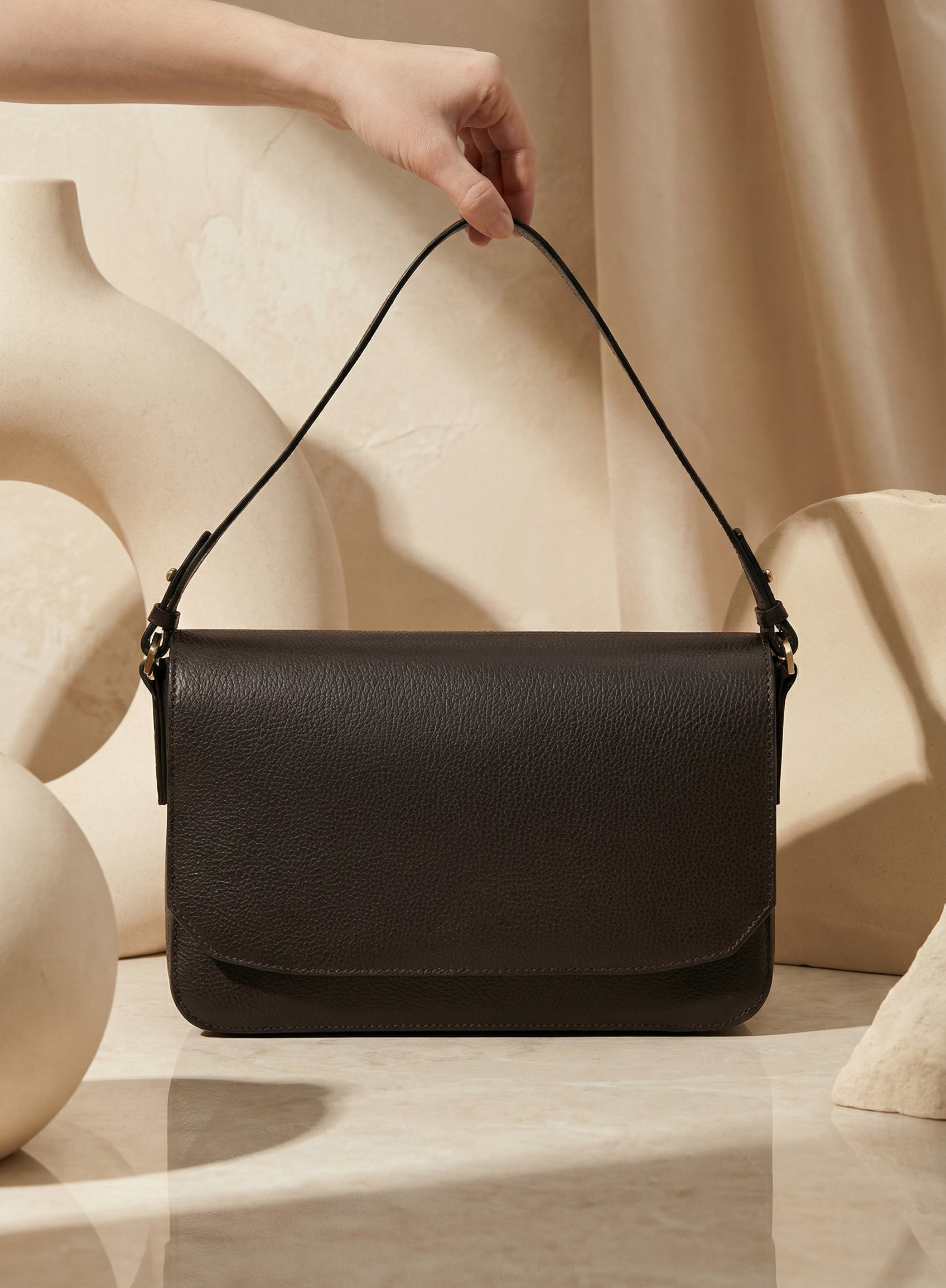 Стильная кожаная сумка через плечо Deboro 30512 темно-коричневый из натуральной кожи.